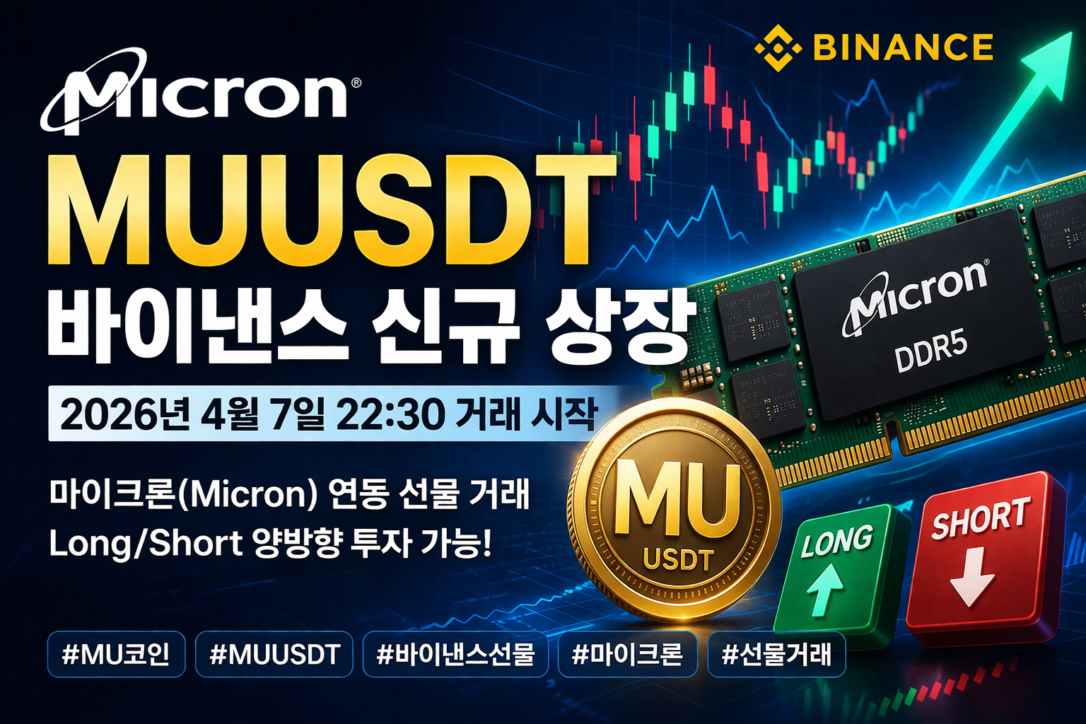 바이낸스에 MUUSDT 선물 거래가 추가될 예정입니다. MU는 미국 반도체 기업 Micron Technology와 관련된 파생상품 형태로 알려져 있으며 AI 반도체 시장 영향으로 관심이 높아지고 있습니다. MU 코인이란 무엇인가MUUSDT는 Micron Technology(MU) 가격 흐름을 기반으로 거래되는 파생상품 형태의 종목입니다.일반적인 신규 알트코인과 달리 특정 기업 또는 시장 움직임과 연관된 상품으로 볼 수 있습니다.최근 AI 산업 성장으로 인해 반도체 기업 중요성이 높아지면서 관련 종목 관심도 증가하고 있습니다.핵심 특징• 일반 코인 프로젝트가 아님• 특정 자산 가격을 기반으로 움직일 가능성• 선물 거래 형태로 제공• 상승(Long) 하락(Short) 모두 투자 가능 Micron Techno..